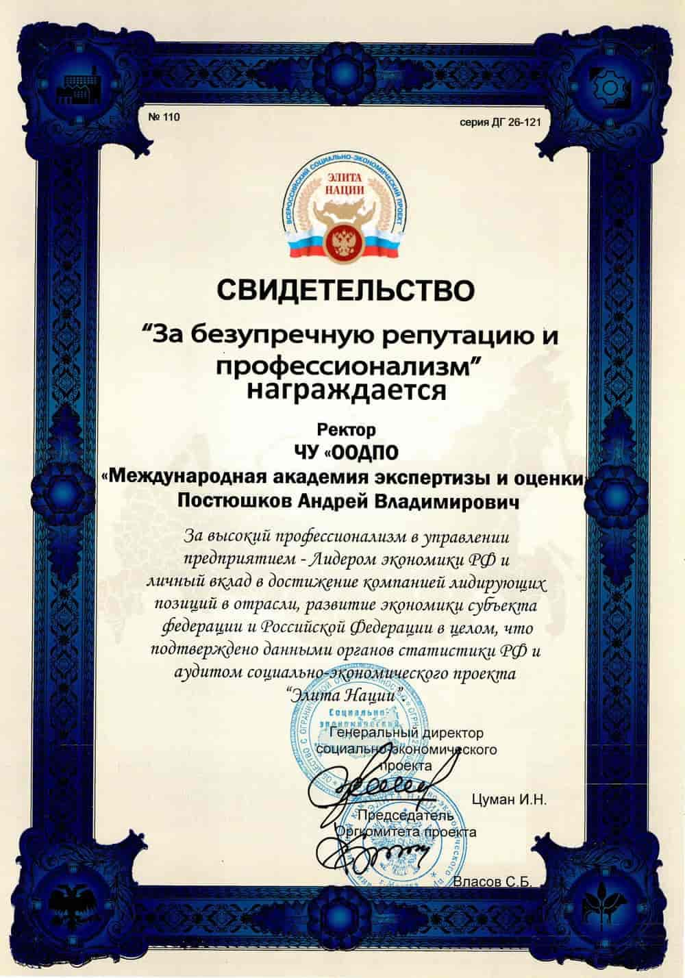 - ТОП-100 лучших образовательных учреждений России по данным Интерпрофстата в 2018 г.;
